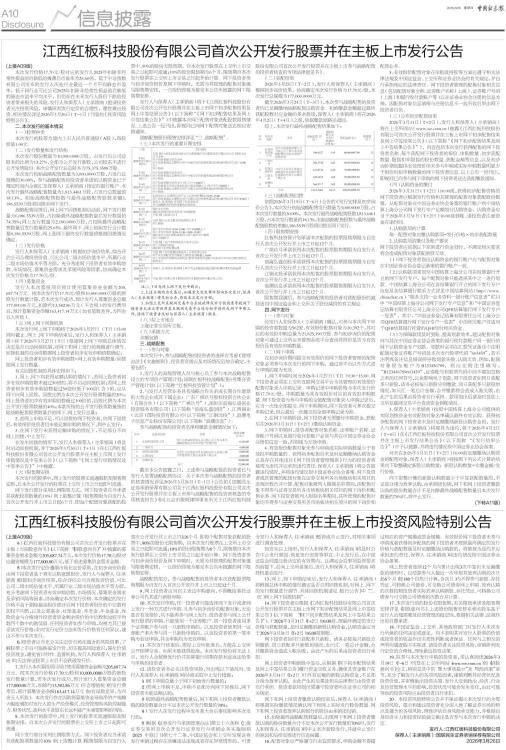 江西红板科技股份有限公司首次公开发行股票并在主板上市投资风险特别公告