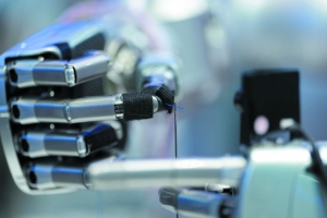 在中关村展示中心常设展上,一台配备了灵巧手的机器人在展示穿针引线。