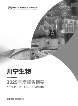 一、重要提示 本年度报告摘要来自年度报告全文,为全面了解本公司的经营成果、财务状况及未来发展规划,投资者应当到证监会指定媒体仔细阅读年度报告全文。 所有董事均已出席了审议本报告的董事会会议。 天健会计师事务所(特殊普通合伙)对本年度公司财务报告的审计意见为:标准的无保留意见。 非标准审计意见提示 □适用 √不适用 公司上市时未盈利且目前未实现盈利 □适用 √不适用 董事会审议的报告期利润分配预案或公积金转增股本预案 √适用 □不适用 公司经本次董事会审议通过的利润分配预案为:以2,230,085,000股为基数,向全体股东每10股派发现金红利1.73元(含税),送红股0股(含税),以资本公积金向全体股东每10股转增0股。 董事会决议通过的本报告期优先股利润分配预案 □适用 √不适用 二、公司基本情况 1、公司简介 ■ 2、报告期主要业务或产品简介 公司隶属于医药制造业,地处霍尔果斯经济开发区,该区域是国家“一带一路”发展战略的丝绸之路经济带核心区域,公司始终坚持发展“生物发酵”与“合成生物学”双轮驱动战略,目前主要从事生物发酵技术和合成生物学产品的研发和产业化。 公司生物发酵项目占地1,319亩,总投资已逾80亿元,建设有硫氰酸红霉素生产线一条、头孢和青霉素系列中间体生产线两条、熊去氧胆酸生产线一条,总产能约为16,000吨/年,主要产品包括硫氰酸红霉素、头孢类中间体(7-ACA、7-ADCA、D-7ACA)、青霉素类中间体(6-APA、青霉素G钾盐)、熊去氧胆酸、辅酶Q10菌丝体等,是国内抗生素中间体领域规模领先、产品类型齐全、生产工艺较为先进的企业之一。 公司合成生物学项目占地591亩,分2期建设,预计总投资为10亿元,一期项目建设有化妆品原料、保健品原料柔性生产线2条,目前已有红没药醇、5-羟基色氨酸、麦角硫因、依克多因、角鲨烷、肌醇、植物鞘氨醇、PHA、大宗香精香料产品等多个产品进入生产,公司是目前业内为数不多的完成了合成生物学从选品一研发一大生产的企业。 ■ 公司当前生产的主要产品中,硫氰酸红霉素主要用于进一步合成大环内酯类抗生素,如红霉素、罗红霉素、阿奇霉素等;7-ACA、D-7ACA及7-ADCA主要用于合成头孢菌素类药物;6-APA、青霉素G钾盐主要用于合成青霉素类抗生素药物;熊去氧胆酸主要适用于胆固醇性胆结石、胆汁反流性胃炎、胆汁淤积性肝病等;辅酶Q10菌丝体主要用于生产辅酶Q10;红没药醇在舒缓修复敏感肌肤、美白、口腔护理以及洗护产品中具有广泛的应用前景;5-羟基色氨酸主要应用于医药、保健品等。各产品的主要用途具体如下: ■ 注:2024年7月,公司收到国家药品监督管理局核准签发的关于公司原料药熊去氧胆酸的《化学原料药上市申请批准通知书》(通知书编号:2024YS00678);登记号Y20220000739、受理号CYHS2260663、注册标准编号YBY68042024;审批结论为:“根据《中华人民共和国药品管理法》及有关规定,经审查,本品符合药品注册的有关要求,批准生产本品。质量标准、标签及生产工艺照所附执行”;与制剂共同审评审批结果为A;通知书有效期至2029年7月8日。公司本产品的制剂为熊去氧胆酸片(胶囊),为利胆药。适用症为对于胆囊收缩功能正常的患者,用于X射线能够穿透的胆囊胆固醇结石的非手术治疗、胆汁淤积性肝病(如原发性胆汁性肝硬化)、胆汁反流性胃炎、脂肪泻(回肠切除术后)。 公司始终秉持“科技创新,引领业务”发展的核心思路,将研发创新作为川宁生物高质量发展的核心驱动力,持续聚焦并紧跟国际生物发酵、环保处理等前沿领域的技术发展趋势。依托自主创新体系,公司全面攻克并掌握生物发酵领域的菌种优选、基因改良、生物发酵、提取精制、酶解催化、过程控制及节能环保等全链条核心技术,在关键技术、核心环节与重点应用领域实现多项突破性成果。通过自主研发与技术培育,公司成功掌握高产菌种制备、500m3发酵罐设计与优化、生产线全流程自动化控制、陶瓷膜过滤、纳滤膜浓缩、丙酮重结晶、复合溶媒回收等一系列关键工艺与装备技术。其中,公司创新应用的500m3 生物发酵罐,为当前业内抗生素及发酵中间体生产领域的最大容积发酵装置,成功破解了超大发酵罐在设计建造、发酵液溶氧供给、无菌控制、营养传递及配套设施搭建中的多项技术瓶颈,大幅提升单批产量与生产效率,规模化生产效益凸显。此外,公司在生产车间整体设计、在线控制设备技术应用上的高起点规划与高度集成化布局,进一步夯实了在行业内的核心竞争优势。 公司先后经相关部门的批准成立了“新疆维吾尔自治区微生物发酵抗生素中间体工程实验室”“新疆抗生素发酵工程技术研究中心”“国家环境保护抗生素菌渣无害化处理与资源利用工程技术中心”“新疆维吾尔自治区企业技术中心”“新疆维吾尔自治区第四批循环经济试点企业”“博士后科研工作站”;入选“2017年第一批绿色制造体系示范名单”“工信部智能制造综合标准化与新模式应用项目名单”“国家生态环境科技成果转化综合服务平台理事会成员单位”“国家知识产权优势企业”“中华全国工商业联合会医药业商会常务理事单位”“新疆一碳化合物生物高效利用重点实验室”“2023年度自治区应急与安全生产协会先进会员单位”;荣获“2016年十二五全国轻工科技创新先进集体”称号、“2016