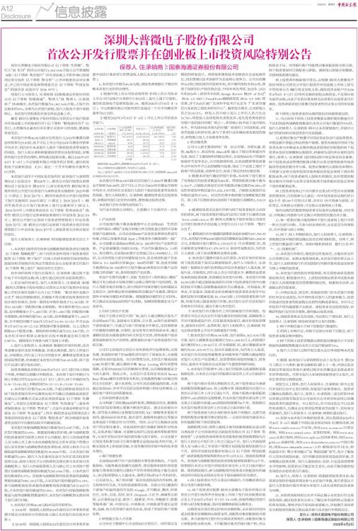 首次公开发行股票并在创业板上市投资风险特别公告