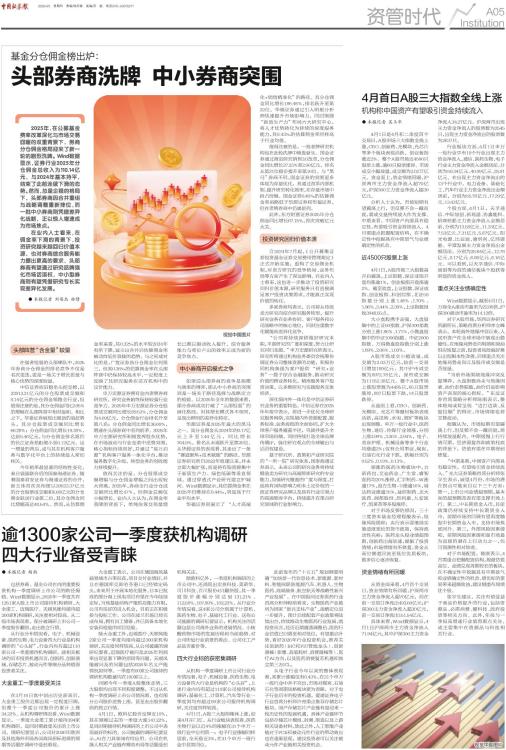 ● 本报记者 胡雨 包括券商、基金公司在内的重要投资机构一季度调研上市公司的路径揭晓。Wind数据显示,2026年一季度共有1351家A股上市公司接待机构调研,大金重工、迈瑞医疗、天顺风能均接待超300家机构调研,关注度相对较高。从二级市场表现看,部分被调研上市公司一季度股价翻倍,走出独立行情。 从行业分布情况看,电子、机械设备、医药生物、电力设备四大行业是机构调研的“心头好”,行业内均有超过110家公司一季度接待机构调研。就相关板块的后市投资机遇而言,创新药、创新器械、存储芯片、被动元件等细分品种值得投资者关注。 大金重工一季度最受关注 在3月16日盘中创出历史新高后,大金重工股价近期出现一定程度回调,但整个一季度公司股价仍累计上涨34.22%。从机构调研情况看,Wind数据显示,一季度大金重工累计接待394家机构调研,是同时期最受关注的上市公司。调研纪要显示,公司对2026年欧洲及其他海外市场各国海风招标进展的预期等话题在调研中受到重视。 大金重工表示,公司在德国海风基础领域市占率很高,项目交付业绩好,并且在德国库克斯哈芬港口已经锁定码头,未来用于开展本地化服务。日本已批准的部分海上风电项目有望在今年陆续定标,当地基础结构产能供应能力有限,公司有很好的进入机会,目前正在积极参与投标工作。公司在波兰市场已经完成布局,拥有员工储备,并已具备本地化安装和检验的项目经验。 除大金重工外,迈瑞医疗、天顺风能2家公司一季度均接待超过300家机构调研,关注度同样较高。从公司披露的调研纪要看,迈瑞医疗被问及2025年利润率出现显著下降的原因等问题,天顺风能被问及的问题包括2026年名义产能情况如何等。一季度有80家公司接待的调研机构数量均在100家以上。 回顾今年一季度A股整体走势,三大股指均出现不同程度调整,不过从机构一季度调研上市公司情况看,也有部分公司股价逆势上涨,甚至走出股价翻倍的独立行情。 4月1日,欧科亿股价反弹近10%,其在刚刚过去的一季度大涨147.22%,是同时期接待机构调研的上市公司中表现最好的标的。公司披露的调研纪要显示,AI在刀具领域有何应用、公司在机器人相关产业链有哪些布局等话题受到机构关注。 除欧科亿外,一季度机构调研的上市公司中,还涌现出宏景科技、美诺华、可川科技、百川股份4只翻倍股,其一季度股价涨幅分别达到131.21%、112.58%、107.99%、102.23%。从行业分布情况看,这4家公司分别属于计算机、医药生物、电子、基础化工行业。这些公司披露的调研纪要显示,机构关注的话题包括公司海外业务的进展情况、小核酸药物市场的发展历程和当前趋势、对公司所处行业前景的看法、公司化工产品是否涨价等。 四大行业标的获密集调研 从机构一季度调研上市公司行业分布情况看,电子、机械设备、医药生物、电力设备四大行业是机构的“心头好”,上述行业内均有超过110家公司接待机构调研;基础化工、计算机、汽车等行业一季度则均有超过80家公司接待机构调研,关注度同样较高。 4月1日,A股三大股指集体上涨,迎来4月开门红。从行业板块表现看,医药生物行业以近4%的涨幅在31个申万一级行业中位列第一;电子行业涨幅同样居前,全天涨近3%,在31个申万一级行业中居第四位。 此前发布的“十五五”规划纲要明确“加快新一代信息技术、新能源、新材料、智能网联新能源汽车、机器人、生物医药、高端装备、航空航天等战略性新兴产业发展”,在中国银河证券医药行业首席分析师程培看来,生物医药产业被列为国家“新兴支柱产业”,战略定位进一步提升,预计后续配套产业政策将陆续出台,持续推动生物医药行业发展。就投资而言,经历近期震荡调整后,医药行业估值已回落至相对低位,有望重启升势,看好2026年行业投资机会,推荐关注创新药(BIC和FIC管线龙头)、创新器械(影像、高值耗材、消费器械等)、医疗AI方向,以及医药消费复苏机遇和独立第三方ICL。 从电子行业今年以来的整体表现看,其累计涨幅仅有0.43%,在31个申万一级行业中并不突出,市场对煤炭、石油石化等周期风格板块更为青睐。对于电子行业后市的投资机遇,爱建证券电子行业首席分析师许亮重点推荐存储芯片板块,国产存储芯片产业链有望迎来一轮历史性的发展机遇,具体产业链环节包括存储芯片模组、封测、制造以及上游相关设备材料。除此之外,人工智能产业链对于PCB和被动元件行业的带动效应也在逐渐显现,建议投资者可以关注被动元件产业链相关投资机会。