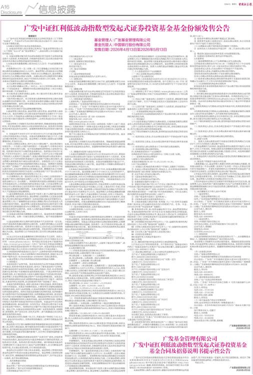 广发中证红利低波动指数型发起式证券投资基金基金份额发售公告