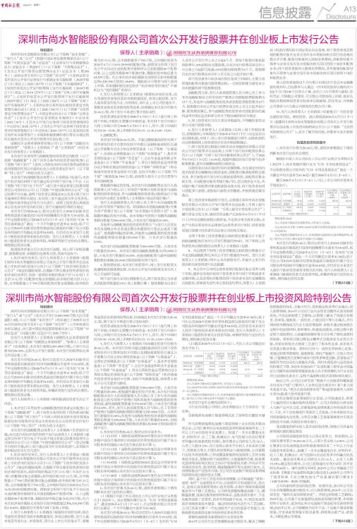 深圳市尚水智能股份有限公司首次公开发行股票并在创业板上市发行公告
