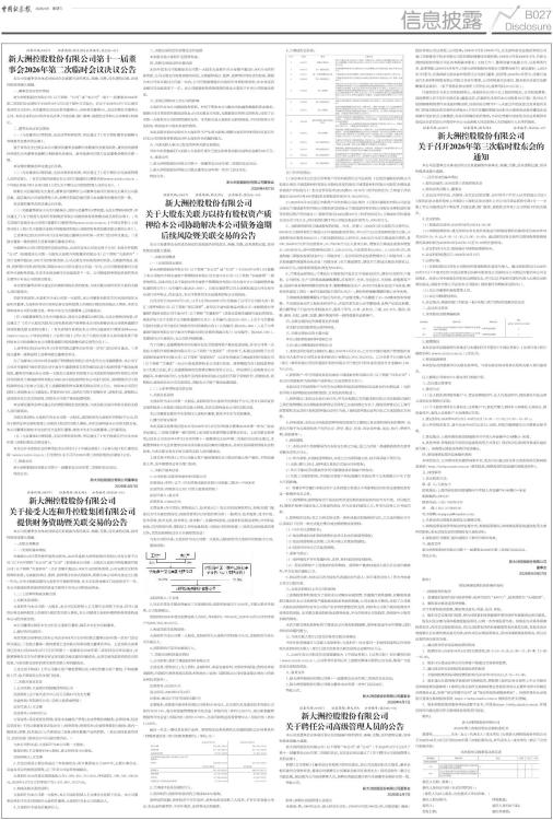 新大洲控股股份有限公司第十一届董事会2026年第二次临时会议决议公告