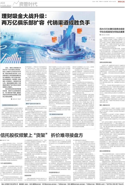 近日,理财公司陆续发布2025年下半年理财业务报告,结合上市银行公布的2025年年报,中国证券报记者发现,去年多家理财公司的管理规模实现较大幅度增长,两万亿俱乐部扩容至招银理财、兴银理财、信银理财、农银理财、工银理财五家公司。复盘规模增长原因,代销渠道拓展和产品布局优化被多家理财公司提及。 面对居民定期存款再配置的机遇,理财行业发展前景良好。努力做好客户服务,提高投资者的持有体验和获得感,是理财公司的必答题。 ● 本报记者 李蕴奇 信银理财管理规模跃居第三 中国理财网数据显示,2025年末理财公司存续规模30.71万亿元,同比增长16.72%。从理财公司管理规模来看,招银理财、兴银理财、信银理财分别位列2025年末前三名,管理资产规模分别为2.64万亿元、2.43万亿元、2.30万亿元。同时,农银理财和工银理财的管理规模也突破了2万亿元,理财公司两万亿俱乐部扩容至前述五家公司。 其中,信银理财的管理规模在2025年增长较快,居第三名。与此同时,农银理财、工银理财的排名均后退一名。中信银行在年报中表示,2025年信银理财全面响应投资者日益多元的理财需求,在做好固收产品主要供给者的基础上,争做含权产品的重要供应者,截至2025年末,含权产品存续规模3374.61亿元,较上年末增加1489.59亿元,占新发产品比例从9.68%提升至14.70%;该公司加快提升权益资产投资能力,通过多资产、多策略组合投资,有效增厚理财收益。 2025年,多家理财公司的管理规模增长亮眼。截至2025年末,光大理财、信银理财、中邮理财、民生理财的管理规模均较年初增加超3000亿元;股份行理财公司中,渤银理财、宁银理财的管理规模均同比增长超40%;法巴农银理财和汇华理财两家合资理财公司的管理规模增长更是均超过100%。 国信证券非银金融行业负责人孔祥表示,从合计数据看,2025年样本理财公司旗下的理财产品规模同比增长13%,合计净利润同比增长16%,利润增速快于规模增速,这与理财公司普遍压降现金管理类产品,增加多资产产品比重有关,后者管理费更高且有机会获得超额分成。随着存款利率下降,居民定期存款到期后寻找“低波动、稳健收益”产品作为替代,这促进了多资产理财产品显著扩张。 重视产品优化和代销扩张 翻阅各家银行2025年年报可以发现,代销渠道拓展和产品布局优化是理财公司规模增长的重要引擎。 以光大理财为例,截至2025年末,该公司管理资产总规模19459.63亿元,同比增加3464.75亿元。光大银行在年报中表示,2025年光大理财深化“七彩阳光”产品体系建设,着力强化多资产、多策略投研专业化能力,通过多元配置响应市场需求。截至2025年末,光大理财存续混合类理财产品余额1842.40亿元,占该公司理财产品总金额的比例为9.47%,这一比例在行业内处于较高水平。 中邮理财管理规模的增长也很突出。邮储银行在年报中表示,截至2025年末,中邮理财产品规模13171.52亿元,较上年末增长28.81%,增量、增速排名行业前列,其中邮储银行渠道规模增加2029.44亿元,第三方代销规模增加841.79亿元。值得一提的是,中邮理财第三方代销扩面提速,累计签约58家行外代销渠道,大型渠道覆盖率行业领先,机构客户数量增长9.19%,母行代销、行外代销、直销齐头并进的机构营销拓客服务体系持续完善。管理规模的增长也带动了中邮理财业绩的提升,2025年中邮理财实现营业收入19.76亿元,实现净利润11.71亿元,两项指标分别较2024年增长14.55%、13.69%。 渤银理财的产品规模也大幅增长。2025年末,渤银理财管理产品规模2489.32亿元,较2024年末增加830.97亿元,增长50.11%。渤海银行在年报中表示,渤银理财拓展行外代销渠道成效显著,截至2025年末,已与116家行外机构达成代销合作,代销渠道涵盖国有大行、股份制银行、城农商行、民营银行等,行外代销理财产品规模748.07亿元,较2024年末增加506.56亿元,增长209.75%。值得注意的是,虽然管理规模大幅增长,但渤银理财的业绩增幅较小。2025年,渤银理财实现营业收入4.17亿元,实现净利润2.22亿元,两项指标较2024年分别增长0.72%、0.45%。 一位业内人士表示,发展行外代销渠道有助于快速提升管理规模,但也需要将优质资产向行外代销渠道倾斜,对行内客户的照顾难免不周全。 努力提高投资者获得感 在行业整体增速较快的背景下,部分理财公司的管理规模增长停滞甚至退步。平安银行年报显示,截至2025年末,平安理财管理的理财产品余额10922.11亿元,同比下降约10%。2025年,平安理财实现净利润14.76亿元,较上年下降超20%。对比平安理财发布的理财业务半年度报告可以发现,2025年固收类产品规模减少1186.17亿元,是导致该公司管理规模下滑的主要因素。 前述理财行业人士告诉记者,去年平安理财推行战略转型,主要依托母行展开销售,减少行外代销,这或许是去年该公司管理规模下滑的重要原因。 在2025年发展不顺利的还有青银理财。2025年,青银理财实现营业收入4.02亿元、净利润1.87亿元,较2024年分别下降26.91%、37.04%。 天风证券固收首席分析师谭逸鸣表示,理财行业净值化全面落地后,不得不直面市场波动,产品体验感或将重构。短期来看,在居民存款再配置的趋势下,加之现阶段理财产品在渠道和收益率方面仍有相对优势,尚可部分承接到期居民存款;站在中长期视角来看,若客户的产品持有体验感持续不佳,不排除规模流失的可能。 面对多元需求,多家理财