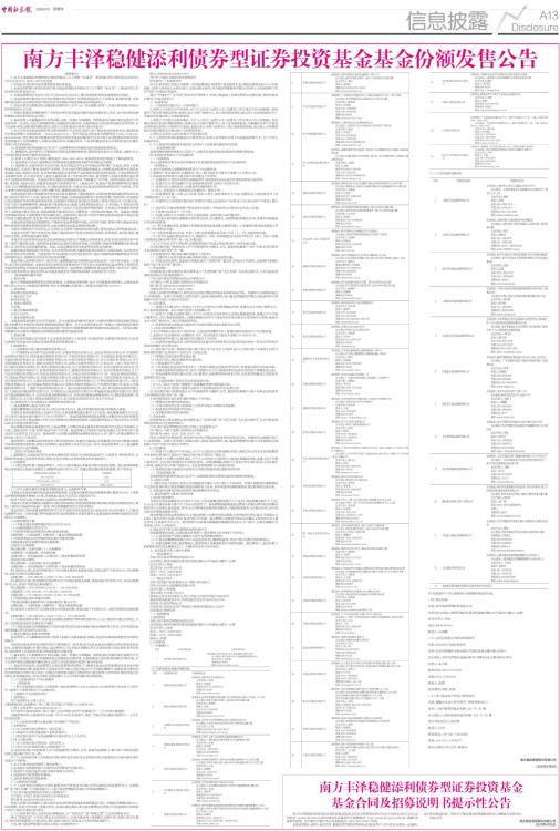 南方丰泽稳健添利债券型证券投资基金基金份额发售公告