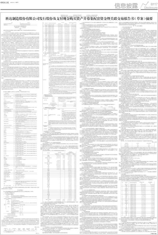 科达制造股份有限公司发行股份及支付现金购买资产并募集配套资金暨关联交易报告书(草案)摘要