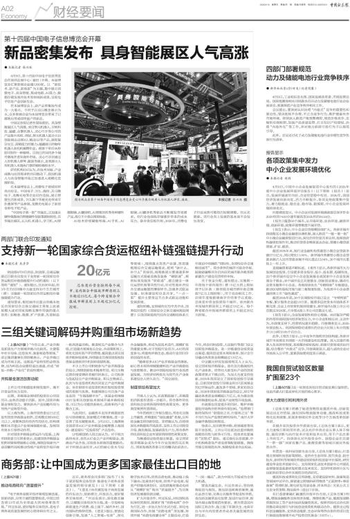 ● 本报记者 张兴旺 4月9日,第十四届中国电子信息博览会在深圳会展中心(福田)开幕。本届博览会汇聚参展企业逾1200家,以“新技术、新产品、新场景”为主题,集中展示消费电子、具身智能、集成电路、AI算力、数据存储及液冷技术等领域新成果,呈现电子信息产业创新生态。 在本届博览会上,新产品密集发布成为一大看点。不同于以往以概念展示为主,众多参展企业为本届博览会带来了已落地应用或即将量产的新品。 中国证券报记者在现场看到,具身智能展区人气高涨。来自智元机器人、宇树科技、越疆、众擎机器人、灵心巧手等公司的产品集中亮相。例如,智元机器人联合元启创新展出灵犀X2、精灵G2等产品,展现复杂交互、高精度力控能力;越疆展示的咖啡机器人依托机械臂作业,顾客下单后45秒即可制作一杯咖啡,目前已在国内多个城市落地并进军海外市场。灵心巧手则通过人形机器人弹琴、敲鼓等演示,直观展示人形机器人末端执行器的精细操控水平。 研究机构IDC认为,在技术突破、产业成熟与应用需求的共同推动下,我国机器人与具身智能市场正加速进入规模化发展阶段。 在本届博览会上,消费电子领域同样亮点纷呈。中国电子、TCL、海信、天马微电子、龙腾光电等企业同台竞技,展示智慧生活新成果。TCL旗下华星光电带来可折叠屏等产品参展,龙腾光电展示了新型全彩电子纸产品。 “中国电子第一街”华强北,正加速从硬件集散地向智能硬件创新策源地转型。在华强北展区,无人机、机器人、学习机、AI智能眼镜、AI翻译机、AI智能耳机等各种硬件产品,吸引不少观众围观体验。 AI技术持续赋能终端,AI手机、AI眼镜、AI翻译机等新品不断激发市场需求,但行业也面临存储涨价带来的成本压力。联合资信报告称,2026年,消费电子行业虽然可能经历短期调整,但从长期看,该行业向上发展的基本面不会发生改变。