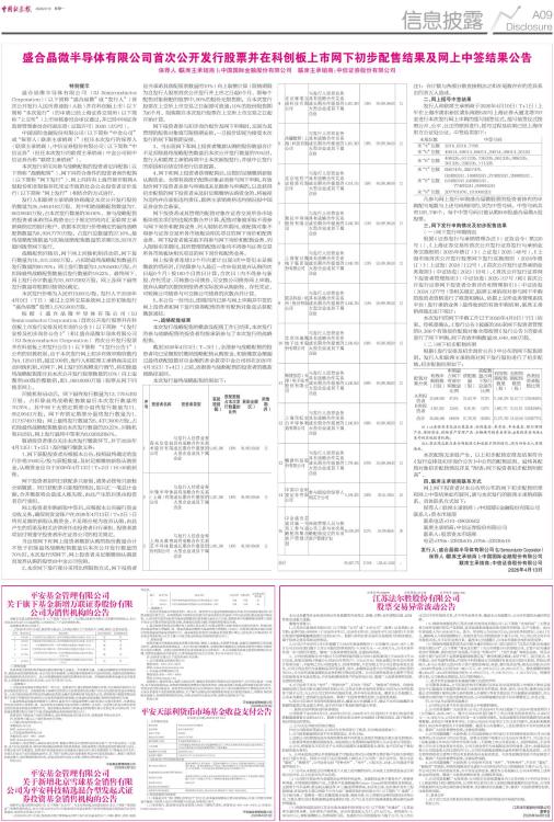 盛合晶微半导体有限公司首次公开发行股票并在科创板上市网下初步配售结果及网上中签结果公告
