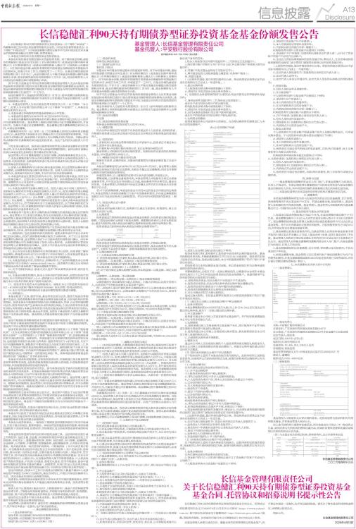 关于长信稳健汇利90天持有期债券型证券投资基金基金合同、托管协议和招募说明书提示性公告