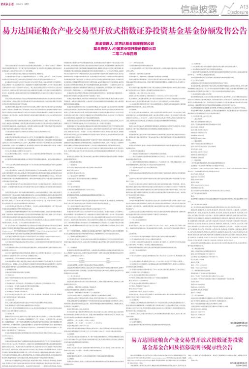 易方达国证粮食产业交易型开放式指数证券投资