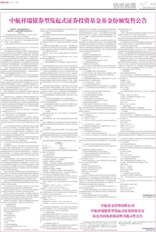 中航祥瑞债券型发起式证券投资基金基金份额发售公告