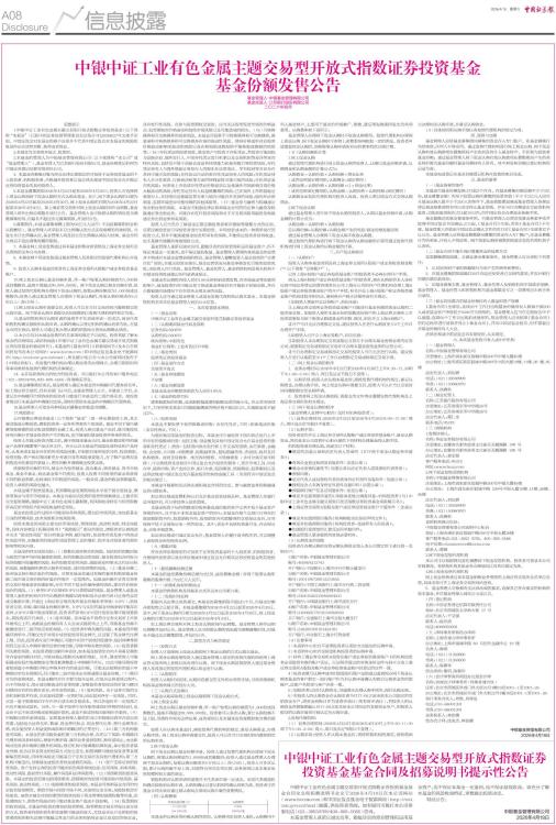 中银中证工业有色金属主题交易型开放式指数证券投资基金基金合同及招募说明书提示性公告