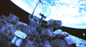 这是4月16日在北京航天飞行控制中心屏幕上拍摄的神舟二十一号乘组航天员武飞在舱外工作的画面。 4月17日01时36分,经过约5.5小时的出舱活动,神舟二十一号乘组航天员张陆、武飞、张洪章密切协同,在空间站机械臂和地面科研人员的配合支持下,圆满完成空间碎片防护装置安装、舱外设备设施巡检等任务。出舱航天员张陆、武飞已安全返回问天实验舱,出舱活动取得圆满成功。新华社发(张帆 摄)