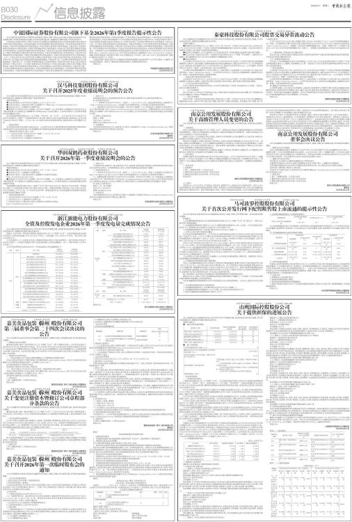 中银国际证券股份有限公司旗下基金2026年第1季度报告提示性公告