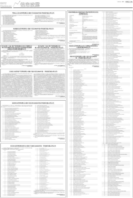 长信基金管理有限责任公司旗下全部基金2026年第一季度报告提示性公告