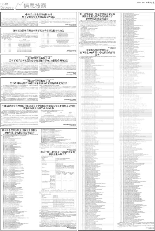 鑫元基金管理有限公司旗下全部基金2026年第1季度报告提示性公告