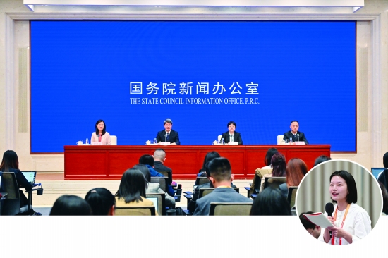 4月21日,国务院新闻办公室在北京举行新闻发布会,工业和信息化部副部长张云明,工业和信息化部新闻发言人、运行监测协调局局长陶青,工业和信息化部新闻发言人、信息通信发展司司长谢存介绍2026年一季度工业和信息化发展情况,并答记者问。中国证券报记者(右下图)在现场提问。
