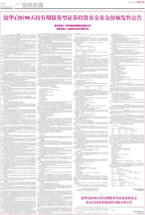 银华启恒90天持有期债券型证券投资基金基金份额发售公告