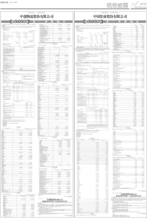 证券代码:601600 证券简称:中国铝业 本公司董事会及全体董事保证本公告内容不存在任何虚假记载、误导性陈述或者重大遗漏,并对其内容的真实性、准确性和完整性承担法律责任。 重要内容提示 公司董事会及董事、高级管理人员保证季度报告内容的真实、准确、完整,不存在虚假记载、误导性陈述或重大遗漏,并承担个别和连带的法律责任。 公司负责人、主管会计工作负责人及会计机构负责人(会计主管人员)保证季度报告中财务信息的真实、准确、完整。 第一季度财务报表是否经审计 □是 √否 一、主要财务数据 (一)主要会计数据和财务指标 单位:千元 币种:人民币 ■ 追溯调整或重述的原因说明 2025年,本公司之全资子公司中铝郑州有色金属研究院有限公司从中国铝业集团有限公司(以下简称“中铝集团”)之附属公司中铝创新开发投资有限公司收购了宁波烯铝新能源有限公司56.6%的股权,以及本公司之全资子公司中铝(郑州)铝业有限公司从中铝集团之附属公司河南长兴实业有限公司(以下简称“长兴实业”)收购了长兴实业的铝基功能复合材料实业部相关资产及负债。前述交易发生前后,交易双方均受中铝集团控制且该控制并非暂时性,构成同一控制下企业合并,故对上年同期数进行重述。 (二)非经常性损益项目和金额 √适用 □不适用 单位:千元 币种:人民币 ■ 对公司将《公开发行证券的公司信息披露解释性公告第1号一一非经常性损益》未列举的项目认定为非经常性损益项目且金额重大的,以及将《公开发行证券的公司信息披露解释性公告第1号一一非经常性损益》中列举的非经常性损益项目界定为经常性损益的项目,应说明原因。 □适用 √不适用 (三)主要会计数据、财务指标发生变动的情况、原因 √适用 □不适用 ■ (四)公司2026年第一季度主要运营数据 ■ 二、股东信息 (一)普通股股东总数和表决权恢复的优先股股东数量及前十名股东持股情况表 单位:股 ■ 持股5%以上股东、前10名股东及前10名无限售流通股股东参与转融通业务出借股份情况 □适用 √不适用 前10名股东及前10名无限售流通股股东因转融通出借/归还原因导致较上期发生变化 □适用 √不适用 三、其他提醒事项 需提醒投资者关注的关于公司报告期经营情况的其他重要信息 □适用 √不适用 四、季度财务报表 (一)审计意见类型 □适用√不适用 (二)财务报表 合并资产负债表 2026年3月31日 编制单位:中国铝业股份有限公司 单位:千元币种:人民币 审计类型:未经审计 ■ 公司负责人:何文建主管会计工作负责人:朱丹会计机构负责人:韩坤 合并利润表 2026年1一3月 编制单位:中国铝业股份有限公司单位:千元币种:人民币 审计类型:未经审计 ■ 公司负责人:何文建主管会计工作负责人:朱丹会计机构负责人:韩坤 合并现金流量表 2026年1一3月 编制单位:中国铝业股份有限公司单位:千元币种:人民币 审计类型:未经审计 ■ 公司负责人:何文建主管会计工作负责人:朱丹会计机构负责人:韩坤 母公司资产负债表 2026年3月31日 编制单位:中国铝业股份有限公司 单位:千元币种:人民币 审计类型:未经审计 ■ 公司负责人:何文建主管会计工作负责人:朱丹会计机构负责人:韩坤 母公司利润表 2026年1一3月 编制单位:中国铝业股份有限公司单位:千元币种:人民币 审计类型:未经审计 ■ 公司负责人:何文建主管会计工作负责人:朱丹会计机构负责人:韩坤 母公司现金流量表 2026年1一3月 编制单位:中国铝业股份有限公司单位:千元币种:人民币 审计类型:未经审计 ■ 公司负责人:何文建主管会计工作负责人:朱丹会计机构负责人:韩坤 (三)2026年起首次执行新会计准则或准则解释等涉及调整首次执行当年年初的财务报表 □适用 √不适用 特此公告。 中国铝业股份有限公司董事会 2026年4月23日 股票代码:601600股票简称:中国铝业 公告编号:临2026-020 中国铝业股份有限公司 第九届董事会第十二次会议决议公告 本公司董事会及全体董事保证本公告内容不存在任何虚假记载、误导性陈述或者重大遗漏,并对其内容的真实性、准确性和完整性承担个别及连带责任。 2026年4月23日,中国铝业股份有限公司(以下简称“公司”)召开第九届董事会第十二次会议。本次会议应出席董事8人,实际出席董事7人,有效表决人数8人。公司董事张瑞忠先生因其他公务未能出席本次会议,其已书面委托毛世清先生代为出席会议,并按其已表示的意愿进行表决。会议由公司董事长何文建先生主持。公司部分高级管理人员列席了会议。本次会议的召集、召开和表决程序符合《中华人民共和国公司法》等有关法律、法规及《中国铝业股份有限公司章程》的规定。会议审议并一致通过了以下3项议案: 一、关于公司2026年第一季度报告的议案 经审议,董事会通过公司2026年第一季度报告。 本议案在提交董事会审议前已经董事会审核委员会审议通过。 上述报告具体内容请参见公司同日披露于上海证券交易所网站(www.sse.com.cn)的《中国铝业股份有限公司2026年第一季度报告》。 议案表决情况:有权表决票数8票,同意8票,反对0票,弃权0票。 二、关于《中国铝业股份有限公司董事及高级管理人员薪酬管理办法》的议案 经审议,董事会通过《中国铝业股份有限公司董事及高级管理人员薪酬管理办法》(以下简称“《管理办法》”),并同意将