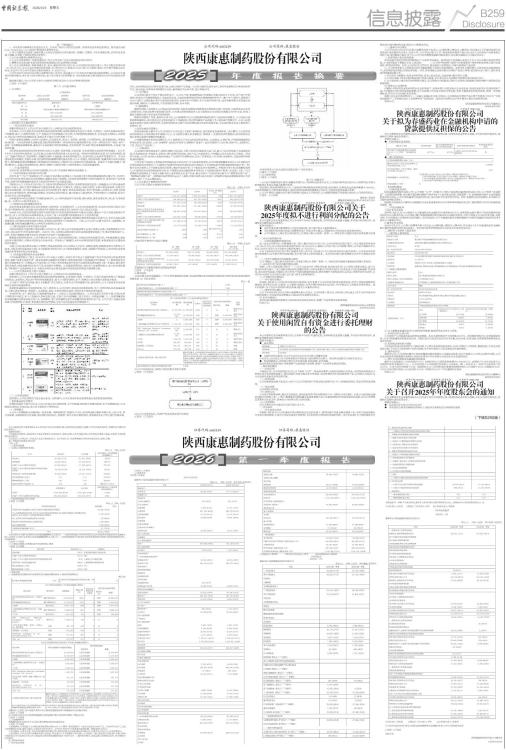 本公司董事会及全体董事保证本公告内容不存在任何虚假记载、误导性陈述或者重大遗漏,并对其内容的真实性、准确性和完整性承担法律责任。 重要内容提示 公司董事会及董事、高级管理人员保证季度报告内容的真实、准确、完整,不存在虚假记载、误导性陈述或重大遗漏,并承担个别和连带的法律责任。 公司负责人、主管会计工作负责人及会计机构负责人(会计主管人员)保证季度报告中财务信息的真实、准确、完整。 第一季度财务报表是否经审计 □是 √否 一、主要财务数据 (一)主要会计数据和财务指标 单位:元 币种:人民币 ■ (二)非经常性损益项目和金额 √适用 □不适用 单位:元 币种:人民币 ■ 对公司将《公开发行证券的公司信息披露解释性公告第1号一一非经常性损益》未列举的项目认定为非经常性损益项目且金额重大的,以及将《公开发行证券的公司信息披露解释性公告第1号一一非经常性损益》中列举的非经常性损益项目界定为经常性损益的项目,应说明原因。 □适用 √不适用 (三)主要会计数据、财务指标发生变动的情况、原因 √适用 □不适用 ■ 二、股东信息 (一)普通股股东总数和表决权恢复的优先股股东数量及前十名股东持股情况表 单位:股 ■ 持股5%以上股东、前10名股东及前10名无限售流通股股东参与转融通业务出借股份情况 □适用 √不适用 前10名股东及前10名无限售流通股股东因转融通出借/归还原因导致较上期发生变化 □适用 √不适用 三、其他提醒事项 需提醒投资者关注的关于公司报告期经营情况的其他重要信息 √适用 □不适用 1、报告期内,公司控股子公司陕西新高新药业有限公司(以下简称“新高新药业”)减少注册资本2000万元,于2026年3月5日,完成工商变更登记手续,减资完成后,注册资本为2500万元。公司已于2026年4月收到新高新退回第一期投资款510万元。 2、报告期内,公司与于艳、北京幻视灵筑科技有限公司、余彬共同成立北京影栈科技有限公司,注册资本1000万元,公司持股20%。 3、报告期内,公司召开第六届董事会第七次会议,审议通过《关于处置资产的议案》,公司拟将一批计算机相关设备进行出售(具体内容详见公司于2026年3月7日在上海证券交易所网站披露的2026-008号公告)。截至报告期末,该批设备已全部完成交付,并全部收回交易款项。 四、季度财务报表 (一)审计意见类型 □适用 √不适用 (二)财务报表 合并资产负债表 2026年3月31日 编制单位:陕西康惠制药股份有限公司 单位:元 币种:人民币 审计类型:未经审计 ■ ■ 公司负责人:李红明 主管会计工作负责人:李甲 会计机构负责人:邹滨泽 合并利润表 2026年1一3月 编制单位:陕西康惠制药股份有限公司 单位:元 币种:人民币 审计类型:未经审计 ■ ■ 本期发生同一控制下企业合并的,被合并方在合并前实现的净利润为:0元,上期被合并方实现的净利润为:0 元。 公司负责人:李红明 主管会计工作负责人:李甲 会计机构负责人:邹滨泽 合并现金流量表 2026年1一3月 编制单位:陕西康惠制药股份有限公司 单位:元 币种:人民币 审计类型:未经审计 ■ 公司负责人:李红明 主管会计工作负责人:李甲 会计机构负责人:邹滨泽 (三)2026年起首次执行新会计准则或准则解释等涉及调整首次执行当年年初的财务报表 □适用 √不适用 特此公告 陕西康惠制药股份有限公司董事会 2026年4月22日 证券代码:603139 证券简称:康惠股份