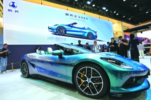 4月24日,在2026北京车展上,参观者在参观腾势Z电动超跑。 当日,2026(第十九届)北京国际汽车展览会开幕。本届车展以“领时代 智未来”为主题,于4月24日至5月3日在中国国际展览中心(顺义馆)、首都国际会展中心举行。(相关报道见A05版)新华社图文