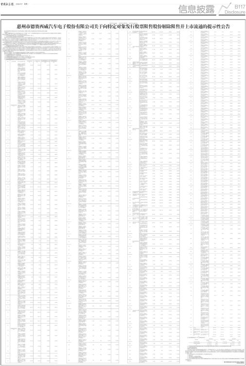惠州市德赛西威汽车电子股份有限公司关于向特定对象发行股票限售股份解除限售并上市流通的提示性公告