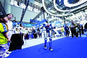 4月26日,观众在第四届中国(安徽)科技创新成果转化交易会上观看一款人形机器人。 4月26日至28日,第四届中国(安徽)科技创新成果转化交易会在合肥举行。本届科交会以“科技打头阵 创新赢未来”为主题,展示我国多个领域科技创新的最新成果。 新华社记者 周牧 摄