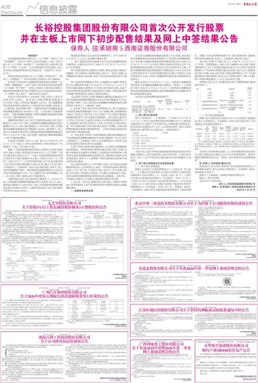 长裕控股集团股份有限公司首次公开发行股票