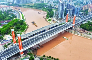 这是4月28日拍摄的建成通车的平陆运河子材大桥(无人机照片)。