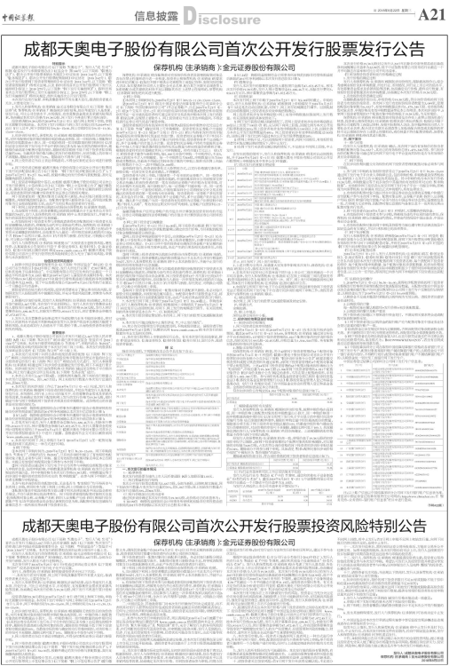 成都天奥电子股份有限公司首次公开发行股票投资风险特别公告