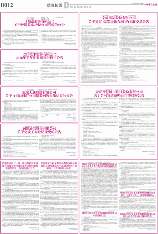 2018年半年度业绩预告修正公告