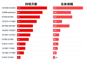 1947年以来标普500指数牛市数据一览