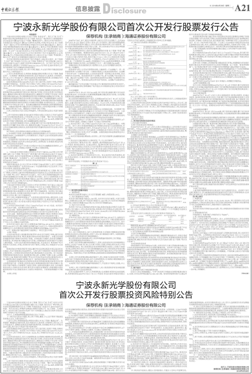 宁波永新光学股份有限公司首次公开发行股票发行公告