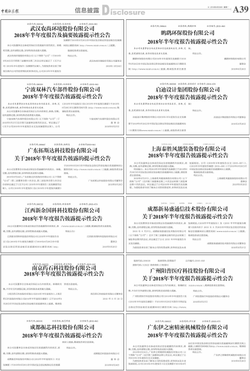 2018年半年度报告及摘要披露提示性公告
