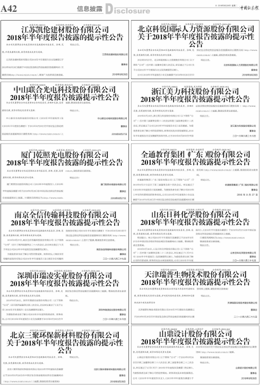 2018年半年度报告披露的提示性公告