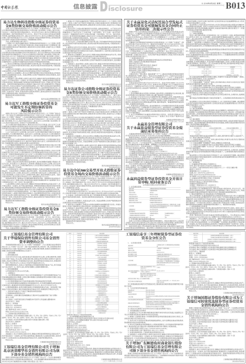 易方达生物科技指数分级证券投资基金B类份额交易价格波动提示公告