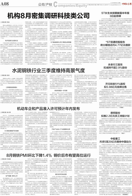 机构8月密集调研科技类公司