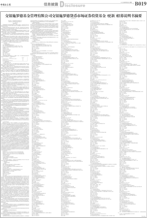 交银施罗德基金管理有限公司交银施罗德货币市场证券投资基金(更新)招募说明书摘要