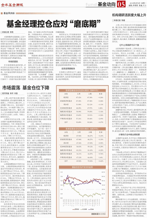 市场震荡 基金仓位下降