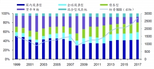 美国各资产类型基金的规模和占比变化情况
