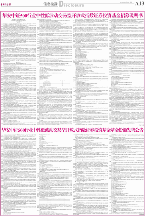 华安中证500行业中性低波动交易型开放式指数证券投资基金招募说明书
