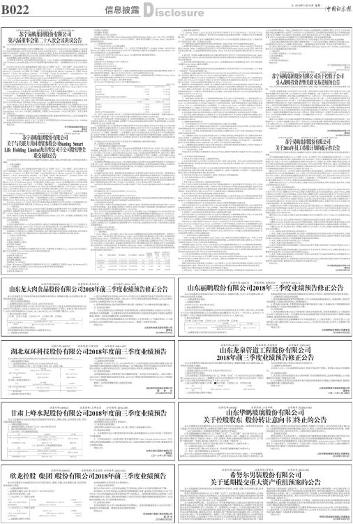山东龙大肉食品股份有限公司2018年前三季度业绩预告修正公告