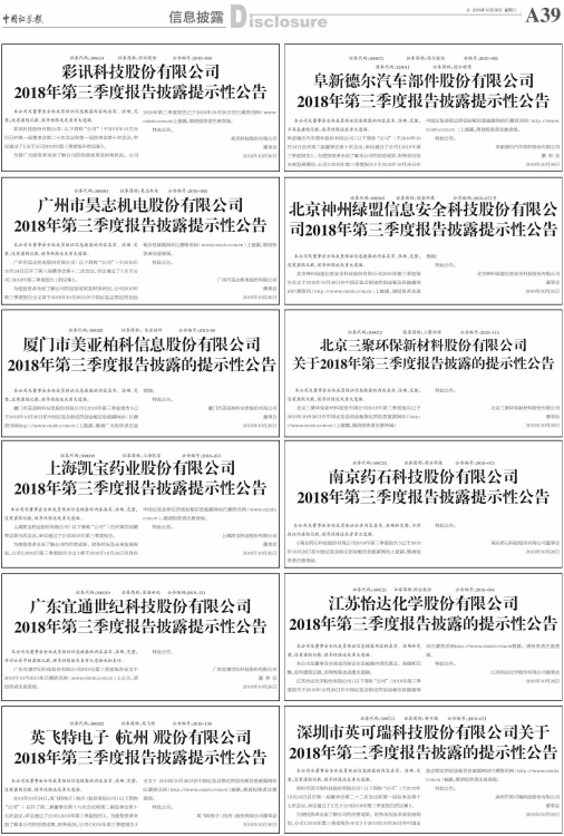 2018年第三季度报告披露的提示性公告