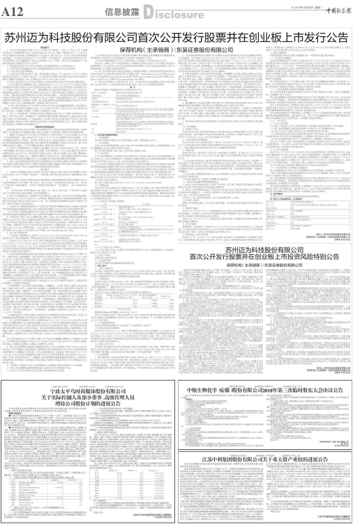 苏州迈为科技股份有限公司首次公开发行股票并在创业板上市发行公告
