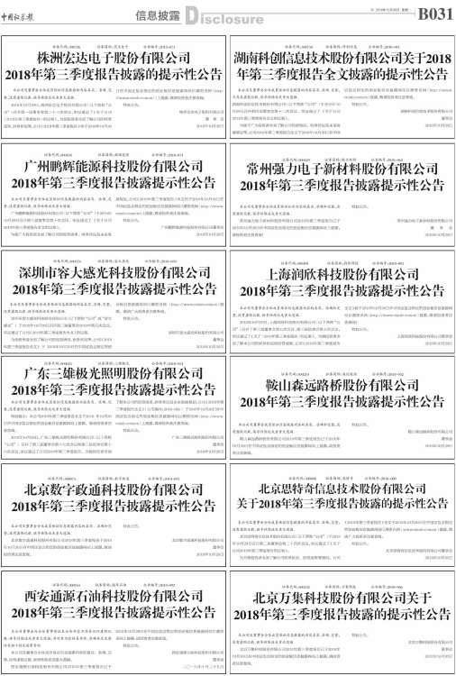 2018年第三季度报告披露的提示性公告