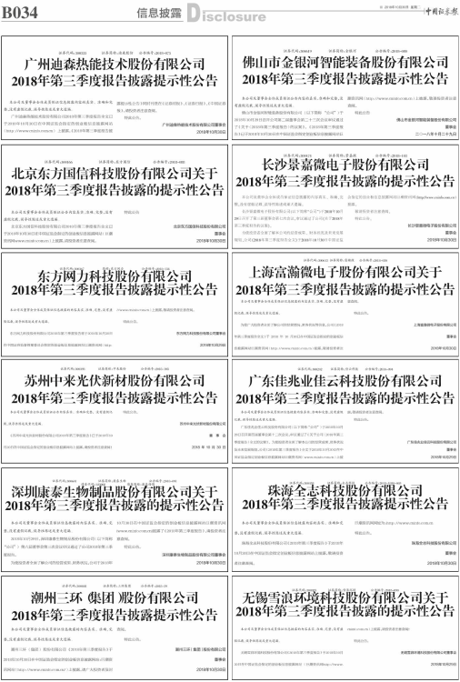 2018年第三季度报告披露的提示性公告