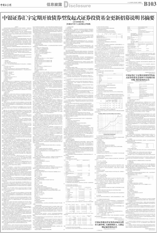中银证券汇宇定期开放债券型发起式证券投资基金更新招募说明书摘要