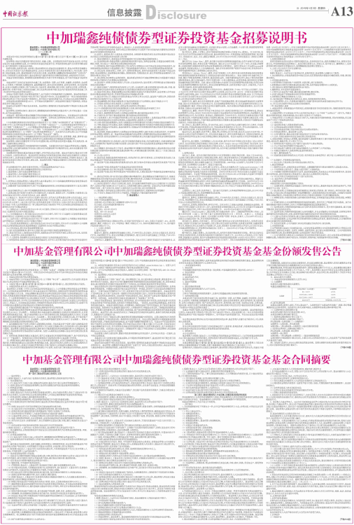 中加基金管理有限公司中加瑞鑫纯债债券型证券投资基金基金份额发售公告