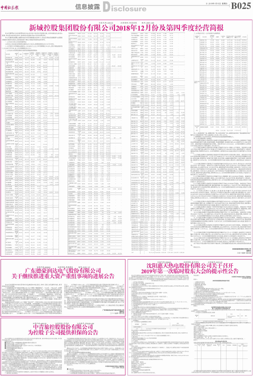 新城控股集团股份有限公司2018年12月份及第四季度经营简报